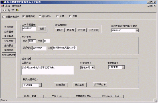 ·系統(tǒng)提供計算機語音板卡和排隊交換機兩種語音接入方案