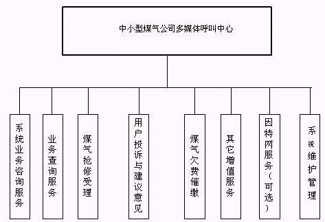 客戶(hù)利用電話、手機(jī)等撥打某一特服號(hào)碼(如9xxxx)進(jìn)入中小型煤氣公司多媒體呼叫中心系統(tǒng),本系統(tǒng)依托煤氣公司各類(lèi)業(yè)務(wù)技術(shù)支持系統(tǒng)和網(wǎng)絡(luò)系統(tǒng),通過(guò)人工受理或自動(dòng)語(yǔ)音服務(wù)等方式全天24小時(shí)不間斷地為客戶(hù)提供各種服務(wù)。