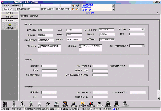 客戶(hù)信息包括客戶(hù)編號(hào)、客戶(hù)名稱(chēng)、聯(lián)系電話、地址、所屬地區(qū)、地區(qū)編號(hào)、用戶(hù)人口數(shù)、樓層等多項(xiàng),接聽(tīng)客戶(hù)呼入電話,由座席代表記錄信息形成檔案,也可采用更為主動(dòng)的呼出方式來(lái)確認(rèn)、核實(shí)、補(bǔ)充檔案。