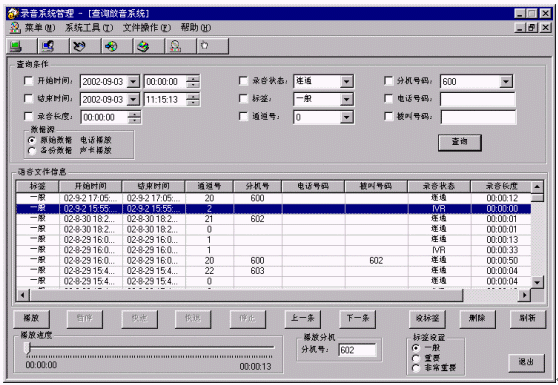 可按通道號、日期、時間、來電號碼、外撥號碼、重要程度標(biāo)簽等多種條件進行復(fù)合查詢。