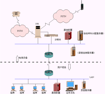 系統(tǒng)支持四種座席配置:PC+耳麥、PC+IP電話、PC+傳統(tǒng)電話、IP電話或傳統(tǒng)電話,其中座席采用PC+耳麥這種配置最容易擴展,只要有一臺多媒體電腦和一付耳麥連接到可管理的IP網絡即可增加一個座席。