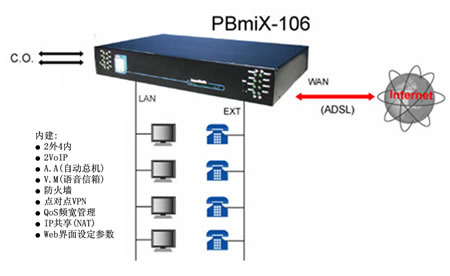 在21世紀(jì)的今日,隨著網(wǎng)絡(luò)應(yīng)用的普及,無(wú)論是個(gè)人或企業(yè)對(duì)于交換機(jī)的觀念若仍拘泥于傳統(tǒng)的思維,將是落伍的。免費(fèi)網(wǎng)絡(luò)電話、分散式系統(tǒng),將是傳統(tǒng)交換機(jī) 在增加語(yǔ)音信箱/自動(dòng)總機(jī)功能之后,系統(tǒng)機(jī)制的重大變革。本公司推出的PBmaX/PBmiX系列IP-PBX,不但將上述所有功能整合于一體,進(jìn)一步可內(nèi)建公司VPN、Web服務(wù)器、GateKeeper等功能,呈現(xiàn)出數(shù)字交換機(jī)的全新風(fēng)貌,并將新的電話使用觀念帶進(jìn)企業(yè)、SOHO辦公室與家庭內(nèi)。
