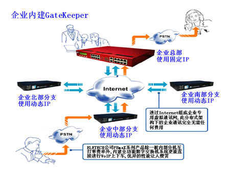 在Intranet環(huán)境下,多臺(tái)IP-PBX可以無(wú)縫的連接在一起協(xié)同工作,讓用戶充分享受分布式系統(tǒng)帶來(lái)的高效性與靈活性。