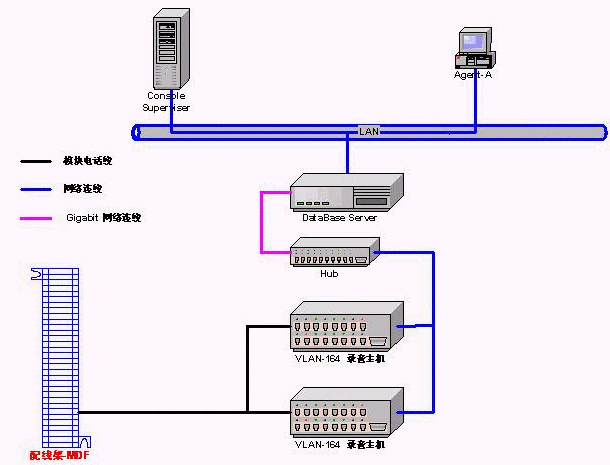 VLAN Lan-based數(shù)字錄音系統(tǒng)采用全網(wǎng)絡(luò)架構(gòu),突破了原有使用錄音卡及工控機(jī)方式的局限性與高成本。使您的錄音系統(tǒng)不再需要工控機(jī),安裝升級(jí)擴(kuò)展完全不受工控機(jī)擴(kuò)展槽及硬件兼容性的限制。VLAN錄音系統(tǒng)推薦采用PC Server作為錄音存儲(chǔ)服務(wù)器,通過(guò)網(wǎng)絡(luò)協(xié)議與VLAN硬件相連。