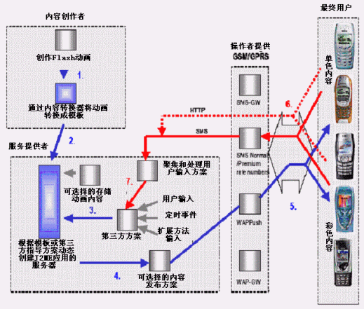 通過(guò)目前的2/2.5G網(wǎng)絡(luò)傳輸,運(yùn)行Flash動(dòng)畫(huà)轉(zhuǎn)換成的應(yīng)用程序不需要在手機(jī)上安裝特別的播放器軟件,只需要支持Java技術(shù)。 該方案可以用現(xiàn)有的網(wǎng)絡(luò)和J2ME設(shè)備,使用戶(hù)提前進(jìn)入多彩的無(wú)線(xiàn)世界,給用戶(hù)一個(gè)新的選擇。