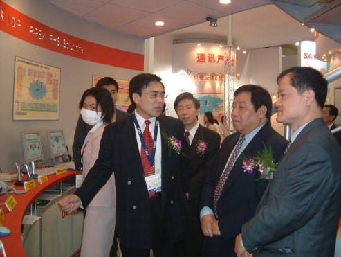 中國(guó)郵電器材集團(tuán)公司總裁楊忠良和上海市通信管理局局長(zhǎng)張健作介紹。