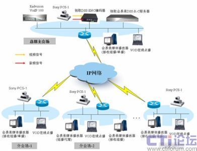 如上圖所示,攀鋼集團(tuán)視頻會(huì)議系統(tǒng)基于IP的組網(wǎng),MCU采用RADVISION VIAIP100綜合視訊交換平臺,終端采用SONY