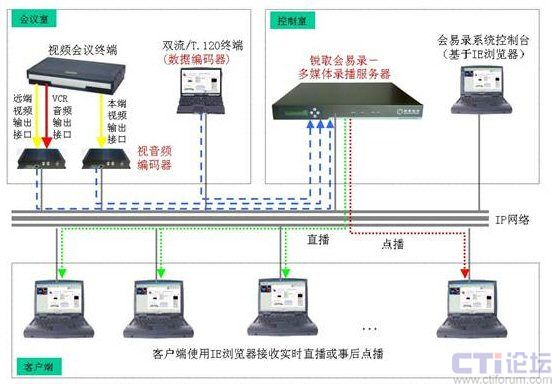 同時(shí)系統(tǒng)具備直播、點(diǎn)播功能,用戶使用IE瀏覽器即可接收會(huì)議的實(shí)時(shí)直播或進(jìn)行事后點(diǎn)播,通過直播或點(diǎn)播可同步觀看到會(huì)議中視音頻和數(shù)據(jù)內(nèi)容,觀看會(huì)議的效果如同身處會(huì)場之后。會(huì)易錄極大地?cái)U(kuò)展了視頻系統(tǒng)的功能和應(yīng)用,適合任何已有或擬建視頻會(huì)議系統(tǒng)的用戶使用。
