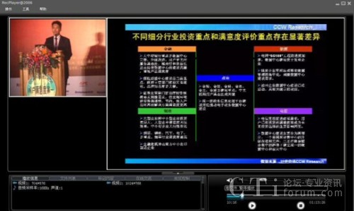 深圳銳取公司作為本次大會的獨家錄播技術(shù)服務(wù)商出現(xiàn)在大會現(xiàn)場,為本次大會提供錄制服務(wù),深受大會主辦方的肯定、認(rèn)可。在許多行業(yè)會議,媒體論壇專家會議中,以往采用傳統(tǒng)的錄制模式只能錄制嘉賓的圖像及演講聲音,但關(guān)鍵的PPT文檔資料卻沒有辦法同步錄制下來,因此主辦法指定了銳取公司的多媒體錄播系統(tǒng),對本次大會的全程錄制。銳取公司的多媒體錄播系統(tǒng)實現(xiàn)了人物圖像、音聲及關(guān)鍵的PPT文檔資料同步一體化體現(xiàn)錄制,會后可制作光盤或通過網(wǎng)頁發(fā)布,方便有興趣人士的會后觀看。