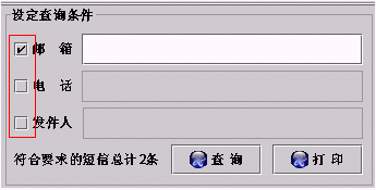 ·也可以通過給定查詢條件來查詢某項內容,如針對某個郵箱、手機電話或發(fā)件人,方法是通過點擊左邊的小方框來選中,然后輸入相應內容即可,如下圖: