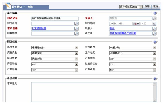 對(duì)于所有客戶(hù)投訴和服務(wù)派工的回訪調(diào)查。