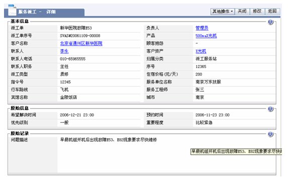 醫(yī)療設(shè)備的維修以現(xiàn)場(chǎng)服務(wù)為主,在接到客戶(hù)服務(wù)請(qǐng)求到派工的流程,依靠紙張遠(yuǎn)遠(yuǎn)達(dá)不到高效的要求,維修情況的記錄已僅僅是事后的文字記錄,通常需要層層上報(bào),更不具備匯總和統(tǒng)計(jì)分析的功能,作為領(lǐng)導(dǎo)不能適時(shí)監(jiān)控和管理在外的維修服務(wù)工程師。