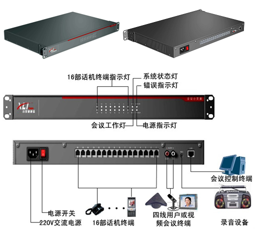 系統(tǒng)提供一個(gè)網(wǎng)口,可方便連接計(jì)算機(jī);針對(duì)各個(gè)行業(yè)用戶特殊需求,系統(tǒng)提供一個(gè)四線模塊,可連接四線終端、視頻設(shè)備、其他會(huì)場(chǎng)設(shè)備或用于雙系統(tǒng)級(jí)聯(lián);通過(guò)聯(lián)網(wǎng)的計(jì)算機(jī),系統(tǒng)即可獨(dú)立使用,也可與計(jì)算機(jī)協(xié)同使用;系統(tǒng)還提供錄音機(jī)接口,可通過(guò)錄音機(jī)或計(jì)算機(jī)進(jìn)行會(huì)場(chǎng)錄音。