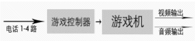 由于許多地區(qū),尤其是縣級(jí)市沒(méi)有信息平臺(tái),而且許多電視臺(tái)愿與電話局直接合作。在這種情況下,電話局和電視臺(tái)合作對(duì)有線用戶公布 特服號(hào)碼,如123456,參與互動(dòng)游戲的用戶,統(tǒng)一撥打該號(hào)碼,電話局提供四條用戶線給互動(dòng)游戲系統(tǒng),同時(shí)對(duì)撥打123456的用戶都轉(zhuǎn)到這四條用戶線來(lái),從而接入到互動(dòng)游戲系統(tǒng),由系統(tǒng)給出語(yǔ)音提示引導(dǎo)用戶參與比賽。由于系統(tǒng)最多允許四個(gè)人參與比賽,當(dāng)用戶滿時(shí),撥打游戲熱線的用戶
