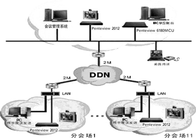 1. 在各會(huì)場之間實(shí)現(xiàn),視頻會(huì)議的功能,包括圖像、語音交互、流媒體廣播以及會(huì)議的組織、控制等。