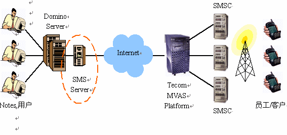 SMS Server,并根據實際情況安裝運行在專用硬件服務器上,或與Domino共享硬件服務器。