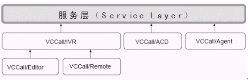 FU-YA VCCall服務層(Service Layer)是構成整個富雅呼叫中心生成系統(tǒng)VCCALL System 的核心。它包括三個功能模塊(見下圖):VCCall/IVR交互式語音應答系統(tǒng)、VCCall/ACD智能呼叫排隊系統(tǒng)、VCCall/Agent座席應用程序。以下就各功能模塊及其相應組件展開詳細介紹。