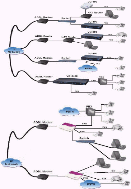 VG400VOIP是集成了VOIP網(wǎng)關(guān)、帶寬管理、流量控制、包封裝等功能于一身的產(chǎn)品。VG400VOIP支持所有一般VOIP網(wǎng)關(guān)功能。它可以象PBX一樣完成現(xiàn)有電話交換、設(shè)置功能,同時(shí),不需要改變?nèi)魏尾僮鬟_(dá)到節(jié)省電話開支的目的。它還支持帶寬和流量管理功能來管理和控制昂貴的Internet帶寬資源。VG400VOIP另一個(gè)特殊的應(yīng)用是可以動(dòng)態(tài)的分配、有效的管理Internet帶寬,以保證一些重要的服務(wù)和用戶擁有最大的帶寬,它極大的提高了網(wǎng)絡(luò)的利用率。