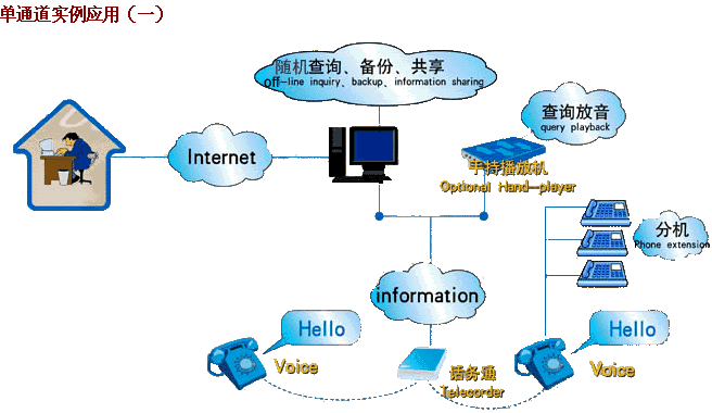 錄音記錄應(yīng)當(dāng)能夠方便地通過多種途徑回放,實(shí)現(xiàn)對錄音記錄資料的利用,這也是用戶配置電話錄音系統(tǒng)的最主要目的;胤趴梢酝ㄟ^我們公司開發(fā)生產(chǎn)的選件手持播放器回放,通過網(wǎng)絡(luò)回放,通過聲卡在其它計算機(jī)上回放等多種方式來實(shí)現(xiàn)。