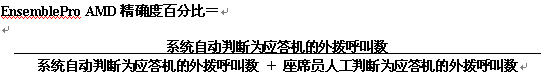 AMD精確度是如何計算的 ?這一點非常重要。EnsemblePro 的AMD精確度采用的是較為保守的算法-僅計算那些被應(yīng)答的電話。下面的等式是EnsemblePro對AMD精確度的定義: