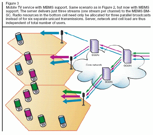 許多移動(dòng)運(yùn)營(yíng)商在2004年推出了移動(dòng)電視業(yè)務(wù),使用者可以通過他們的手機(jī)終端觀看電視節(jié)目。目前是通過點(diǎn)對(duì)點(diǎn)的移動(dòng)流媒體技術(shù)來(lái)提供移動(dòng)電視業(yè)務(wù)的。然而,由于類似移動(dòng)電視這種“多媒體”業(yè)務(wù)即將大規(guī)模地爆發(fā)應(yīng)用,因此需要采用新的網(wǎng)絡(luò)通信技術(shù)如廣播和組播。
