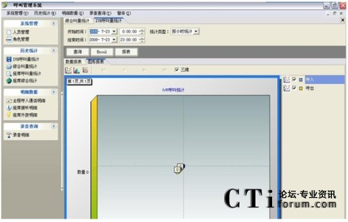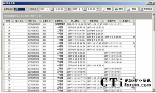 系統(tǒng)提供統(tǒng)計報表生成工具,實現(xiàn)對系統(tǒng)訪問次數(shù)的統(tǒng)計與分析,并以圖示直觀地反映出用戶關注的熱點?砂粗鹘刑柎a、局向統(tǒng)計時長,并自動生成效果圖,直觀表現(xiàn)業(yè)務發(fā)展。還可根據(jù)主叫統(tǒng)計時長,當天分析,本周分析,本月分析,提供時長走勢圖(可以以小時為單位分析時長的走勢,也可以以天為單位分析時長的走勢)
