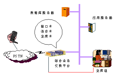 該系統(tǒng)采用微機板卡方案,在實現(xiàn)常規(guī)功能的同時與當(dāng)?shù)氐慕鸷贽k公網(wǎng)建立物理聯(lián)接,充分利用已有網(wǎng)絡(luò)資源并尊重客戶原有業(yè)務(wù)習(xí)慣及流程。