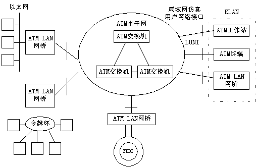 ATM 局域網(wǎng)是指以ATM結(jié)構(gòu)為基本框架的局域網(wǎng)絡(luò),它以ATM局域網(wǎng)交換機(jī)為交換點(diǎn),通過各種ATM接入設(shè)備,如ATM集線器、ATM網(wǎng)卡等將用戶接入局域網(wǎng)。ATM網(wǎng)絡(luò)具有帶寬大,速度高的優(yōu)點(diǎn),并能提供業(yè)務(wù)質(zhì)量QOS服務(wù),其性能大大優(yōu)于傳統(tǒng)共享式局域網(wǎng),但同時(shí)也面臨著高速以太網(wǎng)的挑戰(zhàn)。