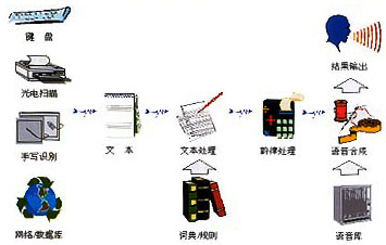 -----按照人類(lèi)言語(yǔ)功能的不同層次,語(yǔ)言合成也可分成三個(gè)層次,它們是:(1)從文字到語(yǔ)音的合成(Text-To-Speech);(2)從概念到語(yǔ)音的合成(Concept-To-Speech);(3)從意向到語(yǔ)音的合成(Intention-To-Speech)。這三個(gè)層次反映了人類(lèi)大腦中形成說(shuō)話內(nèi)容的不同過(guò)程,涉及人類(lèi)大腦的高級(jí)神經(jīng)活動(dòng)。不難想象,即使是按規(guī)則的文字到語(yǔ)音合成(文語(yǔ)合成)也已經(jīng)是相當(dāng)困難的任務(wù)。為了合成出高質(zhì)量的語(yǔ)言,除了依賴于各種規(guī)則,包括語(yǔ)義學(xué)規(guī)則、詞匯規(guī)則、語(yǔ)音學(xué)規(guī)則外,還必須對(duì)文字的內(nèi)容有很好的理解,這將涉及自然語(yǔ)言理解的問(wèn)題。從這一點(diǎn)講,文語(yǔ)轉(zhuǎn)換系統(tǒng)實(shí)際上也可看作一個(gè)人工智能系統(tǒng)。圖1顯示了一個(gè)完整的文語(yǔ)轉(zhuǎn)換系統(tǒng)示意圖。文語(yǔ)轉(zhuǎn)換過(guò)程是先將文字序列轉(zhuǎn)換成音韻序列,再由語(yǔ)音合成器生成語(yǔ)音波形。其中第一步涉及語(yǔ)言學(xué)處理,例如分詞、字音轉(zhuǎn)換等,以及一整套有效的韻律控制規(guī)則;第二步需要先進(jìn)的語(yǔ)音合成技術(shù),能按要求實(shí)時(shí)合成出高質(zhì)量的語(yǔ)音流。因此一般說(shuō)來(lái),文語(yǔ)合成系統(tǒng)都需要一套復(fù)雜的文字序列到音素序列的轉(zhuǎn)換程序,也就是說(shuō),文語(yǔ)轉(zhuǎn)換系統(tǒng)不僅要應(yīng)用數(shù)字信號(hào)處理技術(shù),而且必須有大量的語(yǔ)言學(xué)知識(shí)的支持。當(dāng)然其中語(yǔ)音合成終究還是最基本的部分,它相當(dāng)于“人工嘴巴”,任何語(yǔ)言合成系統(tǒng)包括文語(yǔ)轉(zhuǎn)換系統(tǒng),都離不開(kāi)語(yǔ)音合成器。