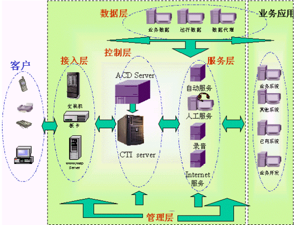 通過(guò)租用信息智能交互平臺(tái)的坐席資源,企業(yè)可以迅速、方便地建立自己的客戶服務(wù)中心,而不需為規(guī)劃、技術(shù)方案、場(chǎng)地、特服號(hào)申請(qǐng)、人員培訓(xùn)等自行建立客戶服務(wù)中心所面臨的種種困難。企業(yè)客戶服務(wù)利用鐵通本地網(wǎng)絡(luò)資源及VPN技術(shù),可將企業(yè)局域網(wǎng)與信息智能交互平臺(tái)建立網(wǎng)絡(luò)通道,使得企業(yè)租用的客戶服務(wù)中心可以直接關(guān)聯(lián)到企業(yè)已有的業(yè)務(wù)系統(tǒng)、網(wǎng)絡(luò)系統(tǒng)中去,實(shí)現(xiàn)信息充分互通、資源共享,也有利于企業(yè)自身的二次開(kāi)發(fā)。