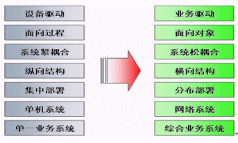 在這種趨勢(shì)下,要求軟件的結(jié)構(gòu)由縱向變?yōu)闄M向,從非平臺(tái)模式轉(zhuǎn)向平臺(tái)模式: