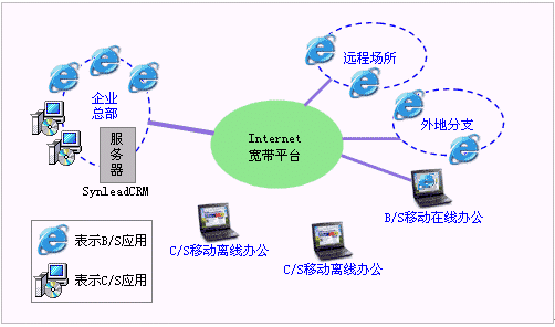 SynleadCRM企業(yè)版4.0可以擴(kuò)充C/S客戶端。B/S架構(gòu)在Internet平臺上具有很好的多分支機(jī)構(gòu)擴(kuò)展性和單邊維護(hù)性(即只是維護(hù)服務(wù)器),而C/S架構(gòu)往往通過Internet