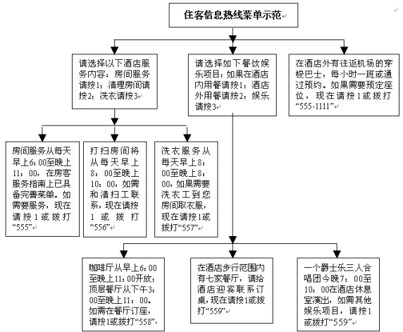 另一個提高服務質量并可減少工作消耗的方式是讓住客直接從電話中獲取主要信息,特別是那些簡單、重復、繁瑣的問題,從而使服務人員有更多的時間從事其他工作。