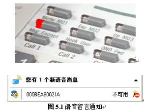 當(dāng)有新消息到達(dá)時,話機(jī)上的“Msg”燈會閃亮,MXIE軟件也會有相應(yīng)提示。