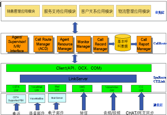 。。CallRoute平臺是一個基于CSTA標準、支持分布互連的呼叫中心平臺。商路通呼叫中心平臺全套產(chǎn)品包括多個服務(wù)部件,客戶端的接口部件(OCX、DLL)以及功能豐富應(yīng)用工具。我們的軟件系統(tǒng)采用先進的軟件工程設(shè)計方法,整個系統(tǒng)的軟件結(jié)構(gòu)體系遵循以下設(shè)計原則:
