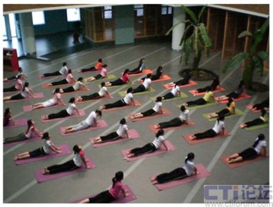 下圖為萬聲呼叫中心員工做瑜伽,保證身心健康