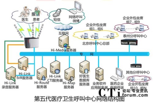 圖:第五代醫(yī)藥衛(wèi)生呼叫中心網(wǎng)絡(luò)結(jié)構(gòu)圖