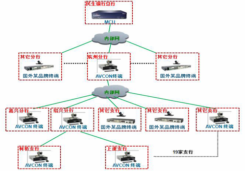 民生銀行杭州分行是民生銀行總行設(shè)在浙江省的一級分行。為了提高工作效率,增強內(nèi)部溝通,民生銀行杭州分行需要建設(shè)以其為中心并覆蓋所有下屬分支機構(gòu),具備遠程、實時、交互功能的高清視頻會議系統(tǒng)。建設(shè)高清視頻會議系統(tǒng)基于“操作更方便、運行更穩(wěn)定、功能更全面、圖像更清晰”原則,充分利用現(xiàn)有民生銀行杭州分行網(wǎng)絡(luò)資源、技術(shù)資源,打造技術(shù)領(lǐng)先、設(shè)備先進、效果良好的優(yōu)質(zhì)網(wǎng)絡(luò)視頻會議系統(tǒng)。從使用上滿足三大主要功能: