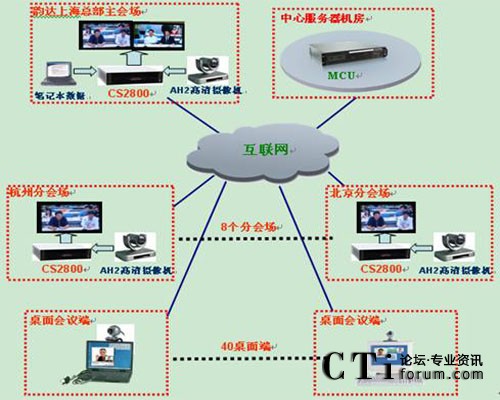 系統(tǒng)為每個(gè)點(diǎn)配置華平CS2800全高清視頻終端,它可以實(shí)現(xiàn)2路1080P全高清視頻輸入和4路1080P全高清視頻輸出,并且全面支持H.264 High Profile(level5)編碼技術(shù),在視頻精度提高一倍的情況下,所需帶寬減半,實(shí)現(xiàn)全動(dòng)態(tài)1080P視頻傳輸僅需1M的帶寬,配合華平高清MCU,可在韻達(dá)快運(yùn)現(xiàn)有的網(wǎng)絡(luò)條件下實(shí)現(xiàn)全公司的全高清視頻會(huì)議,實(shí)現(xiàn)高清、高效溝通。