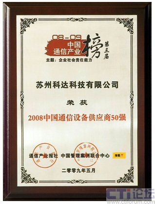 2009中國(guó)通信產(chǎn)業(yè)榜 科達(dá)入圍“2008中國(guó)通信設(shè)備供應(yīng)商50強(qiáng)”