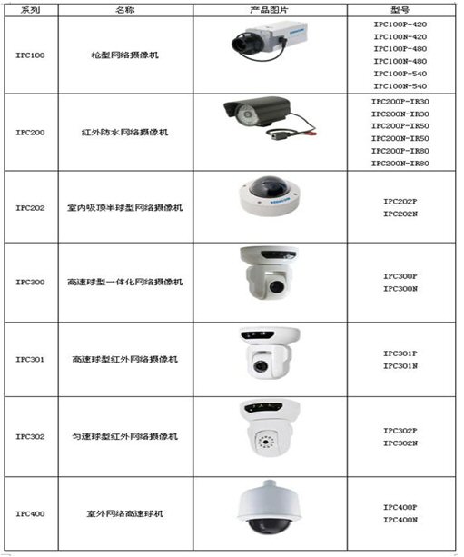 附:科達網(wǎng)絡攝像機新品列表