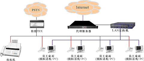 。。某中小企業(yè),無(wú)分支機(jī)構(gòu),現(xiàn)時(shí)有一個(gè)由傳統(tǒng)PBX構(gòu)建的電話系統(tǒng)和一個(gè)以太局域網(wǎng),兩者相互獨(dú)立,局域網(wǎng)通過(guò)一臺(tái)代理服務(wù)器用以太網(wǎng)或ADSL方式接入Internet。企業(yè)的語(yǔ)音通信由電話系統(tǒng)實(shí)現(xiàn);員工的日常工作需要使用計(jì)算機(jī)以及多種局域網(wǎng)和Internet服務(wù)(如文件共享、網(wǎng)絡(luò)打印、瀏覽網(wǎng)頁(yè)、收發(fā)郵件等),這些服務(wù)通過(guò)局域網(wǎng)提供,目前,在企業(yè)的經(jīng)營(yíng)管理上還沒(méi)有應(yīng)用相關(guān)的業(yè)務(wù)系統(tǒng)(如工作流、ERP、CRM等)。