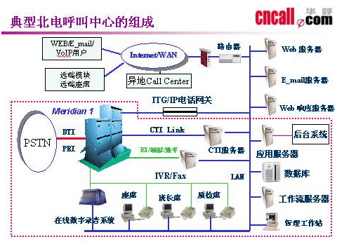 總結(jié)多年呼叫中心的研發(fā)經(jīng)驗(yàn),華呼在中高端呼叫中心建設(shè)上推薦極高性價(jià)比的基于北電Meridian 1 Option 11C交換機(jī)平臺加華呼CTI Link M1D中間件的呼叫中心解決方案。該解決方案的主要特點(diǎn):以中低端的價(jià)位建立起高端的高可靠性、功能全面多樣的呼叫中心,提供包括語音、傳真、E-mail、 Internet及視頻等在內(nèi)的多媒體呼叫中心服務(wù)。同時(shí)用戶可根據(jù)需求靈活增加各個(gè)功能模塊以實(shí)現(xiàn)更完善的功能。