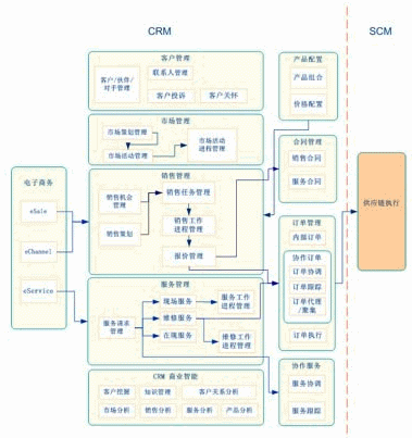 實(shí)現(xiàn)動(dòng)態(tài)價(jià)值鏈環(huán)境下的CRM,支持電子商務(wù)、協(xié)作商務(wù),并與SCM集成。