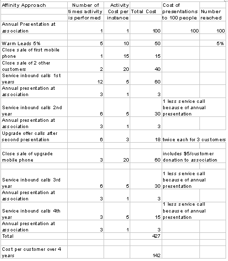 在使用密切關系法的情況下,成本不僅僅在1個新客戶上展開,而是3個。它與隨機法主要的不同是在一個協(xié)會中制造一個年度介紹事件而與市場銷售相協(xié)調(diào),它導致了: