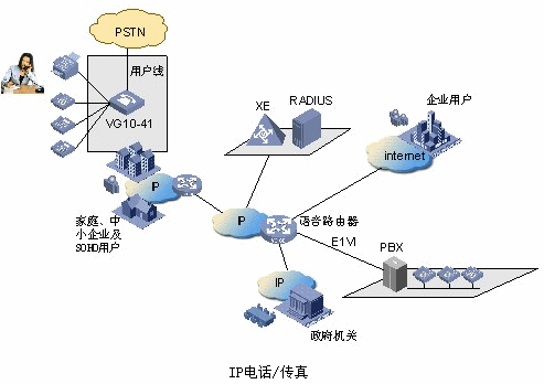 - 用戶通過VG 語音網(wǎng)關不僅可以接入到寬帶城域網(wǎng)上,而且還可以經(jīng)過Internet和國際用戶進行IP電話/傳真通訊。