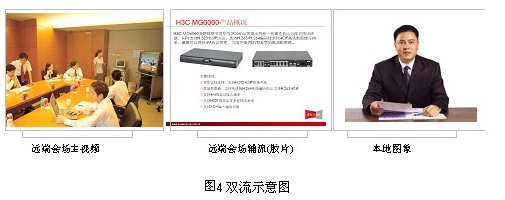 雙視頻流傳輸是指同時傳輸兩路動態(tài)視頻到各分會場:雙流是指分會場能夠?qū)⒈緯䦂龅膬陕芬曨l同時傳輸?shù)組CU上,MCU 能夠?qū)陕芬曨l同時傳輸?shù)礁鞣謺䦂。ME5000與MG6060配合可以將終端第二路視頻傳輸?shù)狡渌麜䦂觯m用于在開會的同時,對文件、圖片講解,使會議更加生動,內(nèi)容更加豐富。