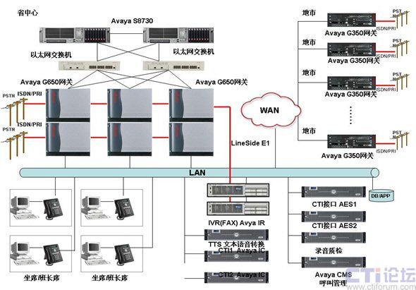 為提供高可靠性,該方案在S8730服務器、G650網(wǎng)關(guān)、IVR、CTI接口、CTI系統(tǒng)等幾個部份設計了全冗余的部件。S8730一套即為雙服務器,兩套服務器互為備份,對用戶端透明,無縫切換,保證呼叫處理的冗余性。
