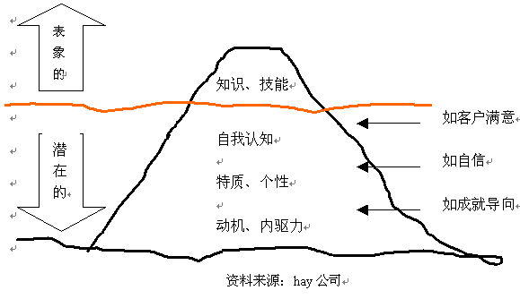 根據(jù)冰山理論,作為冰山水面下的部分,就是我們通常所說(shuō)的"潛能",從上到下的深度不同,則表示被挖掘和感知的難易程度不同。在水下越深,通常越不容易被挖掘和感知。而在水面上的表象部分,即人的知識(shí)、技能則易于被感知。