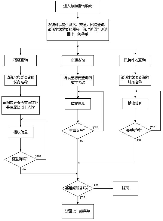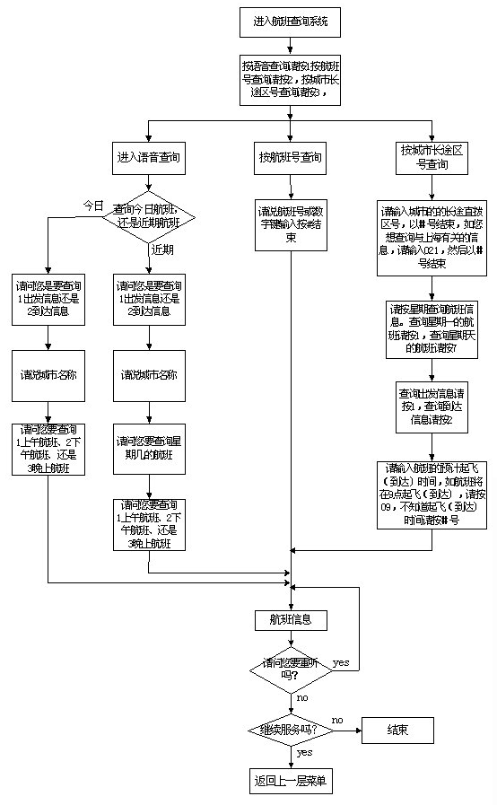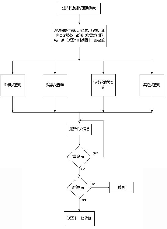 該系統(tǒng)主要采用語音技術(shù)實(shí)現(xiàn)航班信息查詢,系統(tǒng)的主業(yè)務(wù)流程如圖一至五示。